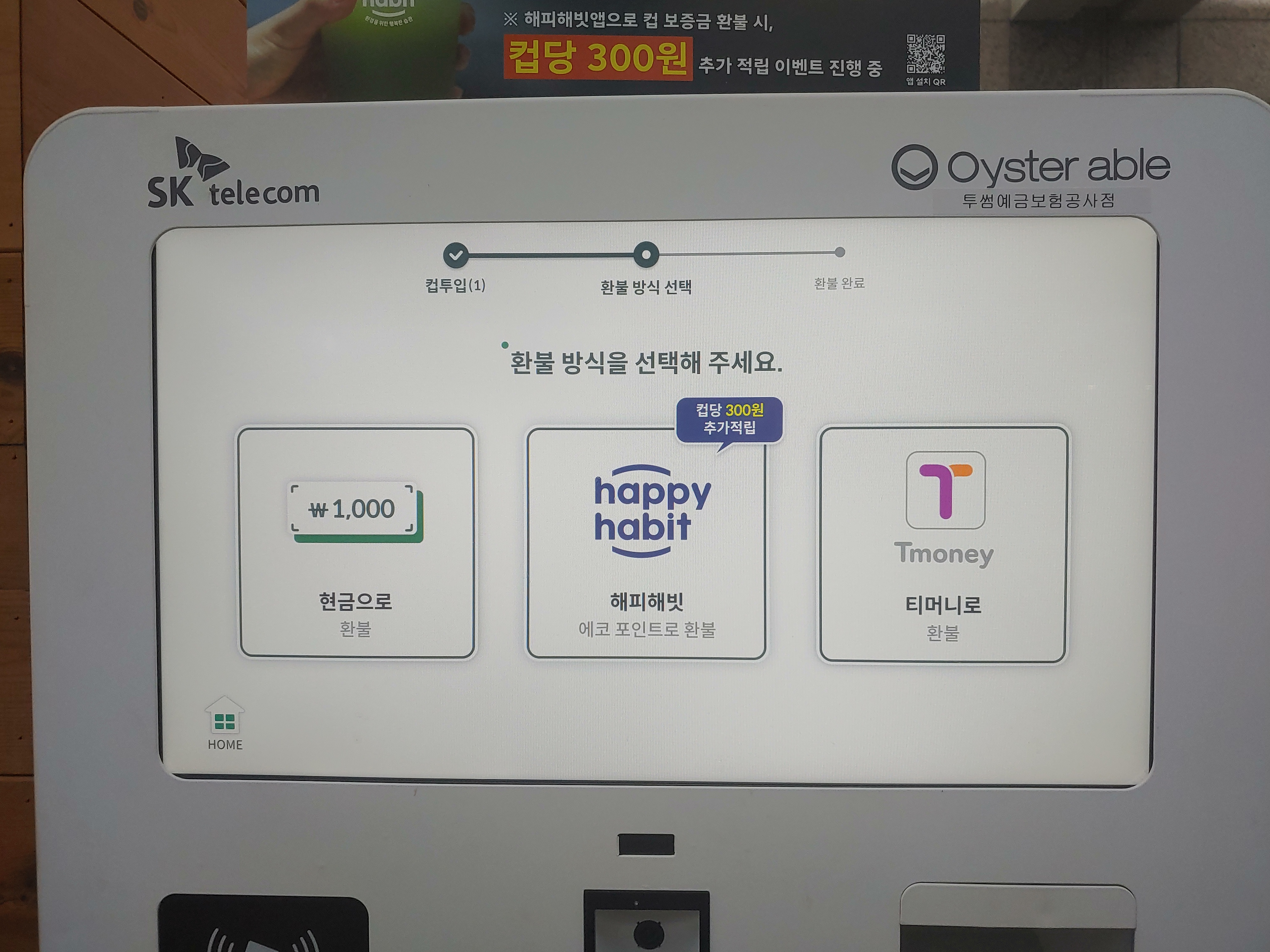 또는 happy habit 라는 앱으로 환급받으면 추가로 300원을 더 준다.